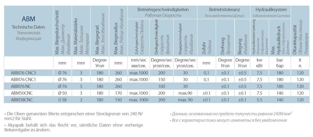 • Сгибание, движение вперед, задержка и трубные оси с автоматическим контролем.
